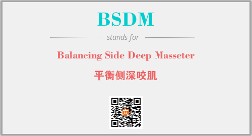英文缩略词“BSDM”经常作为“Balancing Side Deep Masseter”的英文缩写来使用,中文表示:“平衡侧深咬肌”。本文将详细介绍英文缩写词BSDM所代表英文单词,其对应的中文拼音、详细解释以及在英语中的流行度。此外,还有关于缩略词BSDM的分类、应用领域及相关应用示例等。
