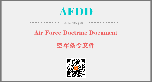 上述内容是“Air Force Doctrine Document”作为“AFDD”的缩写,解释为“空军条令文件”时的信息,以及英文缩略词AFDD所代表的英文单词,其对应的中文拼音、详细解释以及在英文中的流行度和相关分类、应用领域及应用示例等。