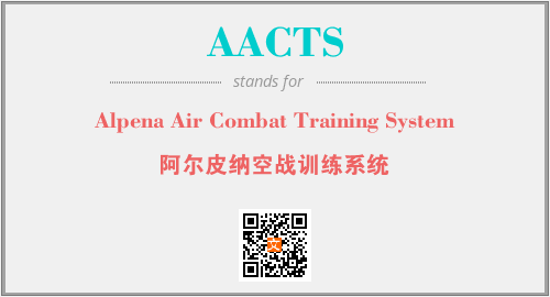 英文缩略词“AACTS”经常作为“Alpena Air Combat Training System”的英文缩写来使用,中文表示:“阿尔皮纳空战训练系统”。本文将详细介绍英文缩写词AACTS所代表英文单词,其对应的中文拼音、详细解释以及在英语中的流行度。此外,还有关于缩略词AACTS的分类、应用领域及相关应用示例等。