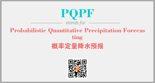 上述内容是“Probabilistic Quantitative Precipitation Forecasting”作为“PQPF”的缩写,解释为“概率定量降水预报”时的信息,以及英文缩略词PQPF所代表的英文单词,其对应的中文拼音、详细解释以及在英文中的流行度和相关分类、应用领域及应用示例等。