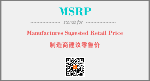 上述内容是“Manufactures Sugested Retail Price”作为“MSRP”的缩写,解释为“制造商建议零售价”时的信息,以及英文缩略词MSRP所代表的英文单词,其对应的中文拼音、详细解释以及在英文中的流行度和相关分类、应用领域及应用示例等。
