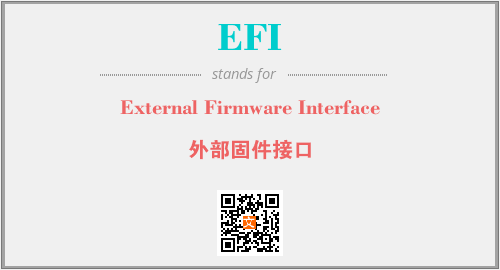 英文缩略词“EFI”经常作为“External Firmware Interface”的英文缩写来使用,中文表示:“外部固件接口”。本文将详细介绍英文缩写词EFI所代表英文单词,其对应的中文拼音、详细解释以及在英语中的流行度。此外,还有关于缩略词EFI的分类、应用领域及相关应用示例等。