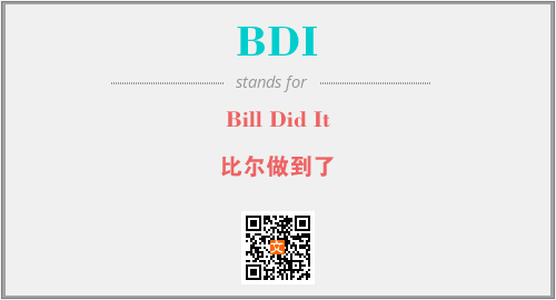 上述内容是“Bill Did It”作为“BDI”的缩写,解释为“比尔做到了”时的信息,以及英文缩略词BDI所代表的英文单词,其对应的中文拼音、详细解释以及在英文中的流行度和相关分类、应用领域及应用示例等。