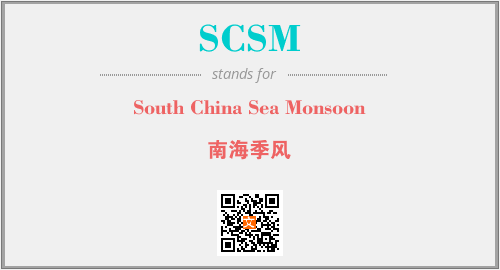 英文缩略词“SCSM”经常作为“South China Sea Monsoon”的英文缩写来使用,中文表示:“南海季风”。本文将详细介绍英文缩写词SCSM所代表英文单词,其对应的中文拼音、详细解释以及在英语中的流行度。此外,还有关于缩略词SCSM的分类、应用领域及相关应用示例等。