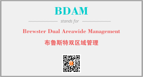 上述内容是“Brewster Dual Areawide Management”作为“BDAM”的缩写,解释为“布鲁斯特双区域管理”时的信息,以及英文缩略词BDAM所代表的英文单词,其对应的中文拼音、详细解释以及在英文中的流行度和相关分类、应用领域及应用示例等。