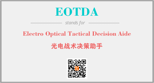 英文缩略词“EOTDA”经常作为“Electro Optical Tactical Decision Aide”的英文缩写来使用,中文表示:“光电战术决策助手”。本文将详细介绍英文缩写词EOTDA所代表英文单词,其对应的中文拼音、详细解释以及在英语中的流行度。此外,还有关于缩略词EOTDA的分类、应用领域及相关应用示例等。