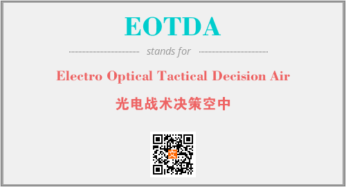 上述内容是“Electro Optical Tactical Decision Air”作为“EOTDA”的缩写,解释为“光电战术决策空中”时的信息,以及英文缩略词EOTDA所代表的英文单词,其对应的中文拼音、详细解释以及在英文中的流行度和相关分类、应用领域及应用示例等。