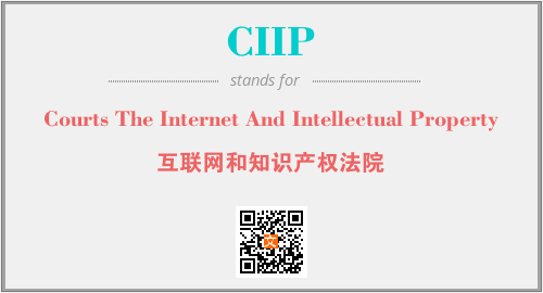 英文缩略词“CIIP”经常作为“Courts The Internet And Intellectual Property”的英文缩写来使用,中文表示:“互联网和知识产权法院”。本文将详细介绍英文缩写词CIIP所代表英文单词,其对应的中文拼音、详细解释以及在英语中的流行度。此外,还有关于缩略词CIIP的分类、应用领域及相关应用示例等。