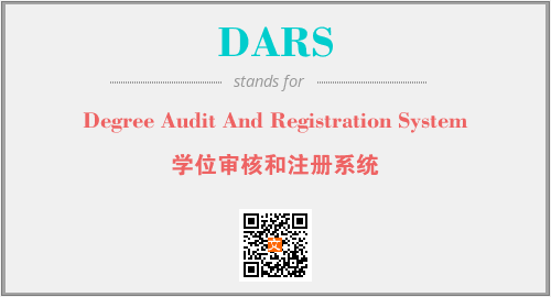 英文缩略词“DARS”经常作为“Degree Audit And Registration System”的英文缩写来使用,中文表示:“学位审核和注册系统”。本文将详细介绍英文缩写词DARS所代表英文单词,其对应的中文拼音、详细解释以及在英语中的流行度。此外,还有关于缩略词DARS的分类、应用领域及相关应用示例等。