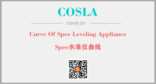 上述内容是“Curve Of Spee Leveling Appliance”作为“COSLA”的缩写,解释为“Spee水准仪曲线”时的信息,以及英文缩略词COSLA所代表的英文单词,其对应的中文拼音、详细解释以及在英文中的流行度和相关分类、应用领域及应用示例等。