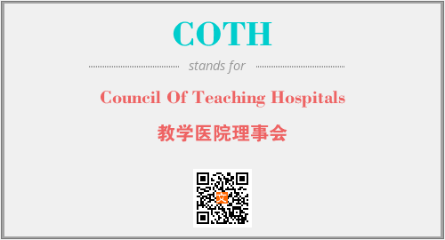 上述内容是“Council Of Teaching Hospitals”作为“COTH”的缩写,解释为“教学医院理事会”时的信息,以及英文缩略词COTH所代表的英文单词,其对应的中文拼音、详细解释以及在英文中的流行度和相关分类、应用领域及应用示例等。
