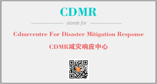 上述内容是“Cdmrcentre For Disaster Mitigation Response”作为“CDMR”的缩写,解释为“CDMR减灾响应中心”时的信息,以及英文缩略词CDMR所代表的英文单词,其对应的中文拼音、详细解释以及在英文中的流行度和相关分类、应用领域及应用示例等。