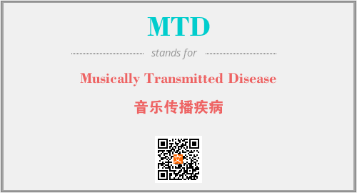 上述内容是“Musically Transmitted Disease”作为“MTD”的缩写,解释为“音乐传播疾病”时的信息,以及英文缩略词MTD所代表的英文单词,其对应的中文拼音、详细解释以及在英文中的流行度和相关分类、应用领域及应用示例等。