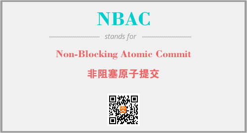 英文缩略词“NBAC”经常作为“Non-Blocking Atomic Commit”的英文缩写来使用,中文表示:“非阻塞原子提交”。本文将详细介绍英文缩写词NBAC所代表英文单词,其对应的中文拼音、详细解释以及在英语中的流行度。此外,还有关于缩略词NBAC的分类、应用领域及相关应用示例等。