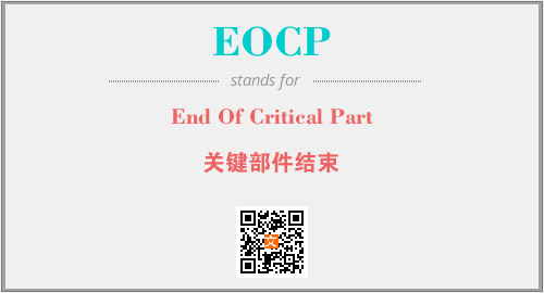 上述内容是“End Of Critical Part”作为“EOCP”的缩写,解释为“关键部件结束”时的信息,以及英文缩略词EOCP所代表的英文单词,其对应的中文拼音、详细解释以及在英文中的流行度和相关分类、应用领域及应用示例等。