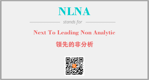 上述内容是“Next To Leading Non Analytic”作为“NLNA”的缩写,解释为“领先的非分析”时的信息,以及英文缩略词NLNA所代表的英文单词,其对应的中文拼音、详细解释以及在英文中的流行度和相关分类、应用领域及应用示例等。