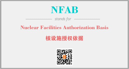 上述内容是“Nuclear Facilities Authorization Basis”作为“NFAB”的缩写,解释为“核设施授权依据”时的信息,以及英文缩略词NFAB所代表的英文单词,其对应的中文拼音、详细解释以及在英文中的流行度和相关分类、应用领域及应用示例等。