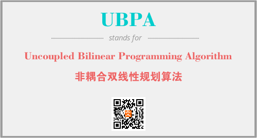 上述内容是“Uncoupled Bilinear Programming Algorithm”作为“UBPA”的缩写,解释为“非耦合双线性规划算法”时的信息,以及英文缩略词UBPA所代表的英文单词,其对应的中文拼音、详细解释以及在英文中的流行度和相关分类、应用领域及应用示例等。