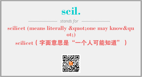 上述内容是“scilicet (means literally "one may know")”作为“scil.”的缩写,解释为“scilicet(字面意思是“一个人可能知道”)”时的信息,以及英文缩略词scil.所代表的英文单词,其对应的中文拼音、详细解释以及在英文中的流行度和相关分类、应用领域及应用示例等。