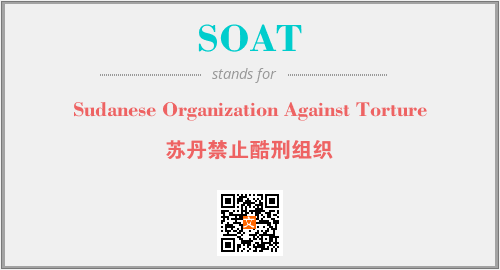 以上为Sudanese Organization Against Torture英文缩略词SOAT的中文解释,以及该英文缩写在英语的流行度、分类和应用领域方面的信息。