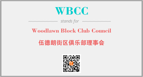 上述内容是“Woodlawn Block Club Council”作为“WBCC”的缩写,解释为“伍德朗街区俱乐部理事会”时的信息,以及英文缩略词WBCC所代表的英文单词,其对应的中文拼音、详细解释以及在英文中的流行度和相关分类、应用领域及应用示例等。