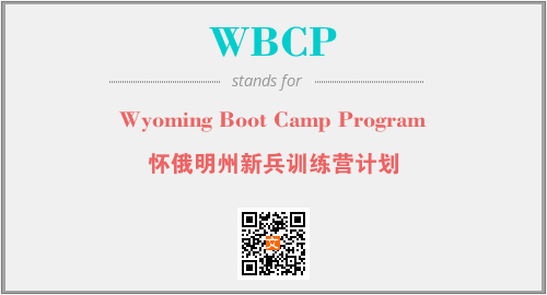 上述内容是“Wyoming Boot Camp Program”作为“WBCP”的缩写,解释为“怀俄明州新兵训练营计划”时的信息,以及英文缩略词WBCP所代表的英文单词,其对应的中文拼音、详细解释以及在英文中的流行度和相关分类、应用领域及应用示例等。