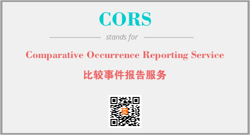 上述内容是“Comparative Occurrence Reporting Service”作为“CORS”的缩写,解释为“比较事件报告服务”时的信息,以及英文缩略词CORS所代表的英文单词,其对应的中文拼音、详细解释以及在英文中的流行度和相关分类、应用领域及应用示例等。