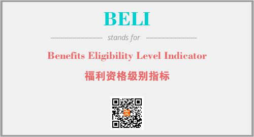 上述内容是“Benefits Eligibility Level Indicator”作为“BELI”的缩写,解释为“福利资格级别指标”时的信息,以及英文缩略词BELI所代表的英文单词,其对应的中文拼音、详细解释以及在英文中的流行度和相关分类、应用领域及应用示例等。