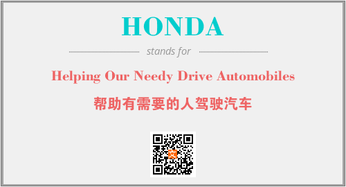 以上为Helping Our Needy Drive Automobiles英文缩略词HONDA的中文解释,以及该英文缩写在英语的流行度、分类和应用领域方面的信息。