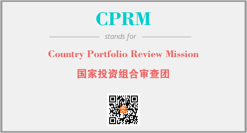 英文缩略词“CPRM”经常作为“Country Portfolio Review Mission”的英文缩写来使用,中文表示:“国家投资组合审查团”。本文将详细介绍英文缩写词CPRM所代表英文单词,其对应的中文拼音、详细解释以及在英语中的流行度。此外,还有关于缩略词CPRM的分类、应用领域及相关应用示例等。