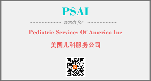 上述内容是“Pediatric Services Of America Inc”作为“PSAI”的缩写,解释为“美国儿科服务公司”时的信息,以及英文缩略词PSAI所代表的英文单词,其对应的中文拼音、详细解释以及在英文中的流行度和相关分类、应用领域及应用示例等。