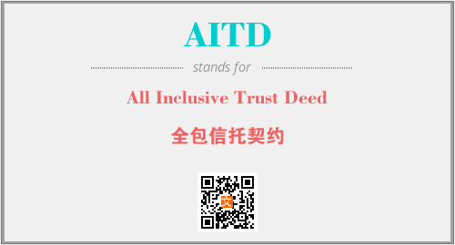 以上为All Inclusive Trust Deed英文缩略词AITD的中文解释,以及该英文缩写在英语的流行度、分类和应用领域方面的信息。