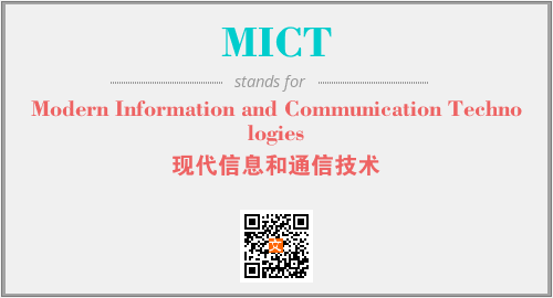 英文缩略词“MICT”经常作为“Modern Information and Communication Technologies”的英文缩写来使用,中文表示:“现代信息和通信技术”。本文将详细介绍英文缩写词MICT所代表英文单词,其对应的中文拼音、详细解释以及在英语中的流行度。此外,还有关于缩略词MICT的分类、应用领域及相关应用示例等。