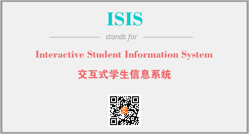 上述内容是“Interactive Student Information System”作为“ISIS”的缩写,解释为“交互式学生信息系统”时的信息,以及英文缩略词ISIS所代表的英文单词,其对应的中文拼音、详细解释以及在英文中的流行度和相关分类、应用领域及应用示例等。