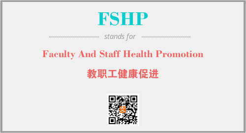 上述内容是“Faculty And Staff Health Promotion”作为“FSHP”的缩写,解释为“教职工健康促进”时的信息,以及英文缩略词FSHP所代表的英文单词,其对应的中文拼音、详细解释以及在英文中的流行度和相关分类、应用领域及应用示例等。