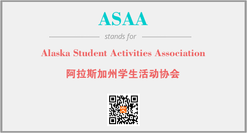 英文缩略词“ASAA”经常作为“Alaska Student Activities Association”的英文缩写来使用,中文表示:“阿拉斯加州学生活动协会”。本文将详细介绍英文缩写词ASAA所代表英文单词,其对应的中文拼音、详细解释以及在英语中的流行度。此外,还有关于缩略词ASAA的分类、应用领域及相关应用示例等。