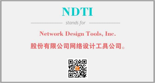 上述内容是“Network Design Tools, Inc.”作为“NDTI”的缩写,解释为“股份有限公司网络设计工具公司。”时的信息,以及英文缩略词NDTI所代表的英文单词,其对应的中文拼音、详细解释以及在英文中的流行度和相关分类、应用领域及应用示例等。