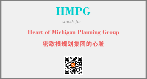 上述内容是“Heart of Michigan Planning Group”作为“HMPG”的缩写,解释为“密歇根规划集团的心脏”时的信息,以及英文缩略词HMPG所代表的英文单词,其对应的中文拼音、详细解释以及在英文中的流行度和相关分类、应用领域及应用示例等。