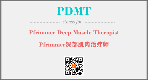 英文缩略词“PDMT”经常作为“Pfrimmer Deep Muscle Therapist”的英文缩写来使用,中文表示:“Pfrimmer深部肌肉治疗师”。本文将详细介绍英文缩写词PDMT所代表英文单词,其对应的中文拼音、详细解释以及在英语中的流行度。此外,还有关于缩略词PDMT的分类、应用领域及相关应用示例等。