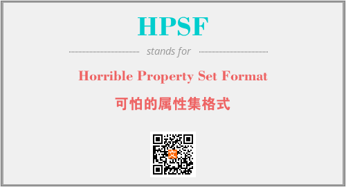 上述内容是“Horrible Property Set Format”作为“HPSF”的缩写,解释为“可怕的属性集格式”时的信息,以及英文缩略词HPSF所代表的英文单词,其对应的中文拼音、详细解释以及在英文中的流行度和相关分类、应用领域及应用示例等。