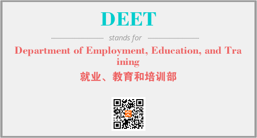 上述内容是“Department of Employment, Education, and Training”作为“DEET”的缩写,解释为“就业、教育和培训部”时的信息,以及英文缩略词DEET所代表的英文单词,其对应的中文拼音、详细解释以及在英文中的流行度和相关分类、应用领域及应用示例等。