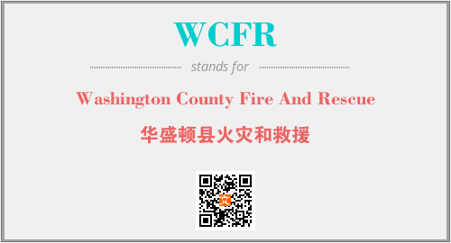 上述内容是“Washington County Fire And Rescue”作为“WCFR”的缩写,解释为“华盛顿县火灾和救援”时的信息,以及英文缩略词WCFR所代表的英文单词,其对应的中文拼音、详细解释以及在英文中的流行度和相关分类、应用领域及应用示例等。