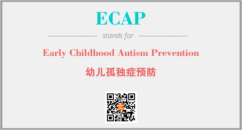 上述内容是“Early Childhood Autism Prevention”作为“ECAP”的缩写,解释为“幼儿孤独症预防”时的信息,以及英文缩略词ECAP所代表的英文单词,其对应的中文拼音、详细解释以及在英文中的流行度和相关分类、应用领域及应用示例等。