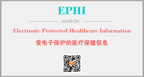 上述内容是“Electronic Protected Healthcare Information”作为“EPHI”的缩写,解释为“受电子保护的医疗保健信息”时的信息,以及英文缩略词EPHI所代表的英文单词,其对应的中文拼音、详细解释以及在英文中的流行度和相关分类、应用领域及应用示例等。