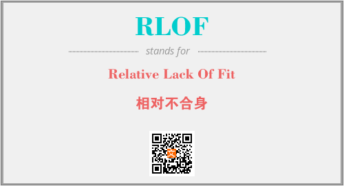 上述内容是“Relative Lack Of Fit”作为“RLOF”的缩写,解释为“相对不合身”时的信息,以及英文缩略词RLOF所代表的英文单词,其对应的中文拼音、详细解释以及在英文中的流行度和相关分类、应用领域及应用示例等。