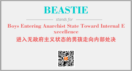 以上为Boys Entering Anarchist State Toward Internal Execellence英文缩略词BEASTIE的中文解释,以及该英文缩写在英语的流行度、分类和应用领域方面的信息。