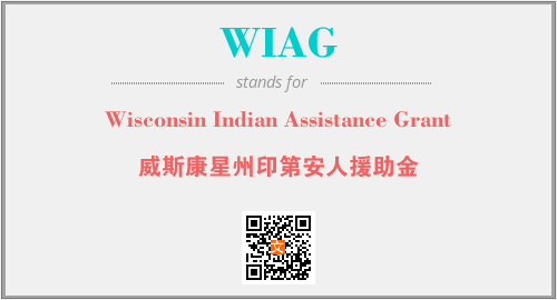 上述内容是“Wisconsin Indian Assistance Grant”作为“WIAG”的缩写,解释为“威斯康星州印第安人援助金”时的信息,以及英文缩略词WIAG所代表的英文单词,其对应的中文拼音、详细解释以及在英文中的流行度和相关分类、应用领域及应用示例等。