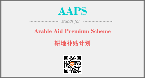 上述内容是“Arable Aid Premium Scheme”作为“AAPS”的缩写,解释为“耕地补贴计划”时的信息,以及英文缩略词AAPS所代表的英文单词,其对应的中文拼音、详细解释以及在英文中的流行度和相关分类、应用领域及应用示例等。