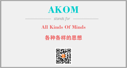 上述内容是“All Kinds Of Minds”作为“AKOM”的缩写,解释为“各种各样的思想”时的信息,以及英文缩略词AKOM所代表的英文单词,其对应的中文拼音、详细解释以及在英文中的流行度和相关分类、应用领域及应用示例等。