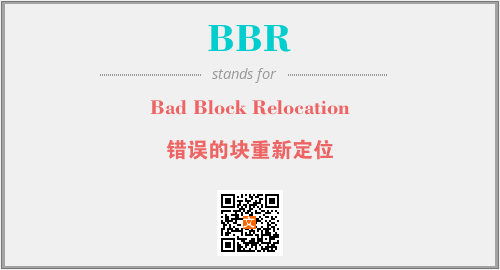 英文缩略词“BBR”经常作为“Bad Block Relocation”的英文缩写来使用,中文表示:“错误的块重新定位”。本文将详细介绍英文缩写词BBR所代表英文单词,其对应的中文拼音、详细解释以及在英语中的流行度。此外,还有关于缩略词BBR的分类、应用领域及相关应用示例等。